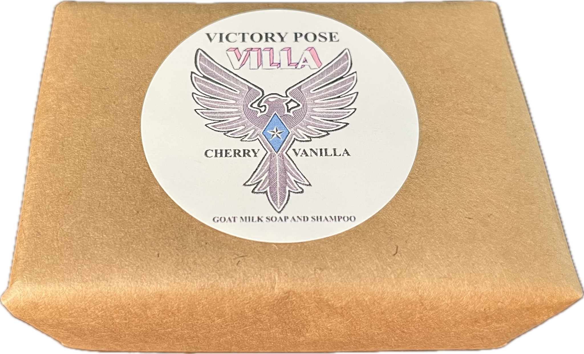 All Natural, Victory Pose Goat's Milk soap is made with 10% refrigerated liquid vitamin D Goat's Milk, has a delicate, creamy lather and has a creamy custard color. It is great for softening ones skin and washing hair in place of traditional shampoos.